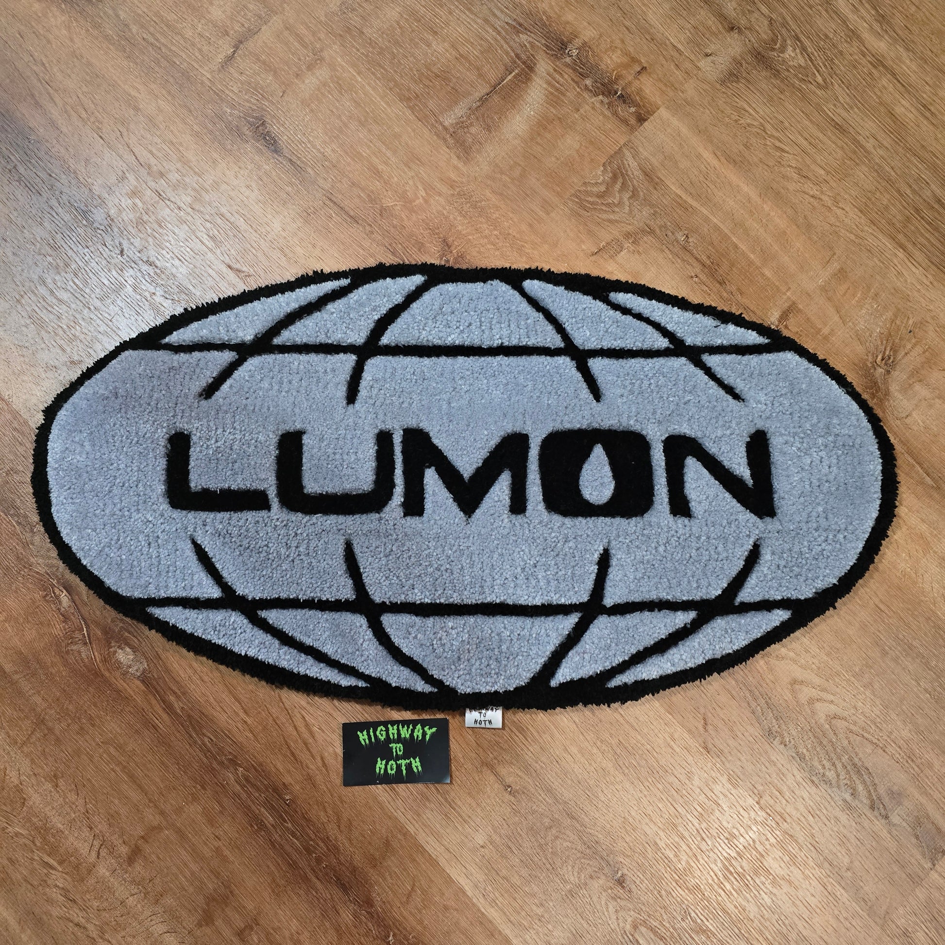 A hand tufted rug or wall hanging inspired by the television show 'Severance'. This features a nonslip backing and measures 15 inches by 29 inches.